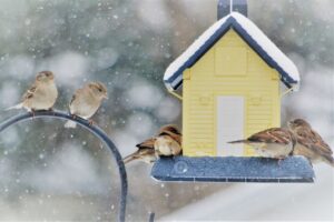 Ptaki powinniśmy dokarmiać szczególnie zimą, gdy pokrywa śnieżna uniemożliwia im żerowanie.